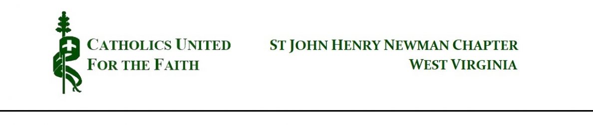 We seek to promote in the Diocese of Wheeling-Charleston the mission of Catholics United for the Faith, which is “to unite the faithful from all walks of life in order to support, defend, and advance the efforts of the Teaching Church in accord with the teachings of the Second Vatican Council” through doctrinal and spiritual formation in the Catholic faith, personal renewal, engagement in evangelization and catechesis, and fidelity and communion with the Holy Father and bishops in union with him.